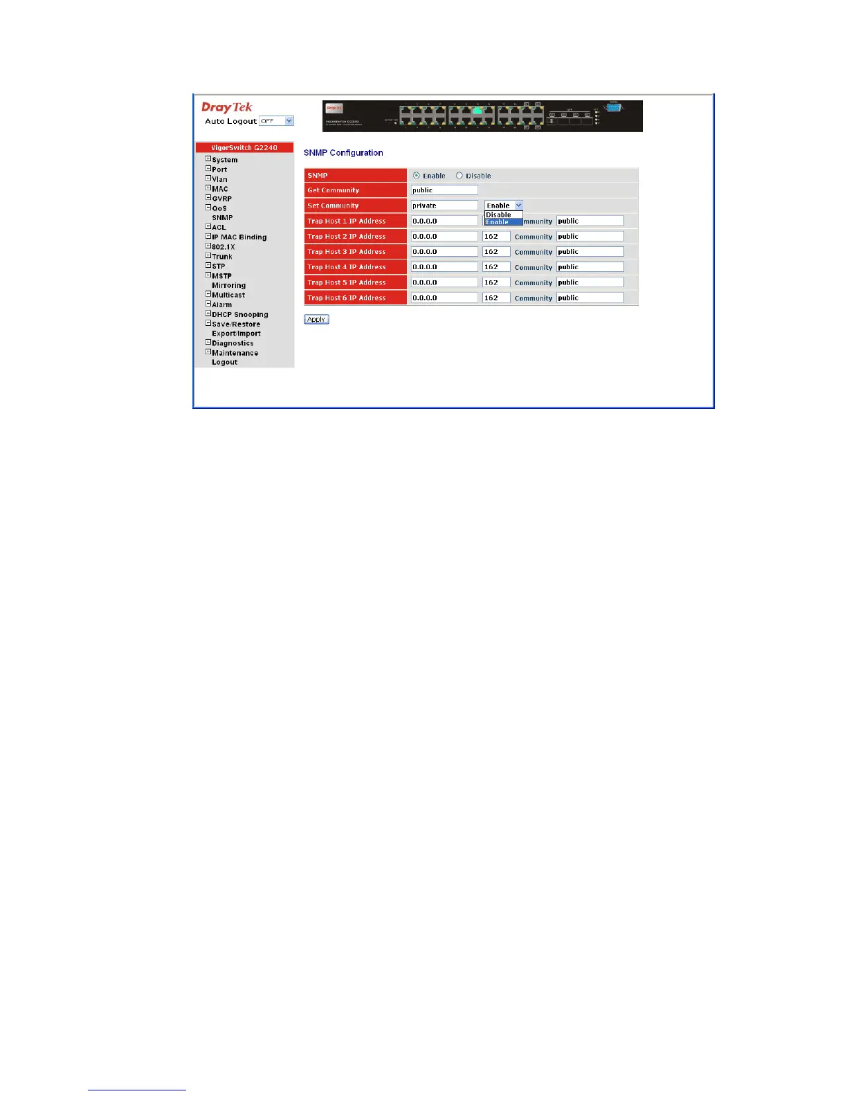 Trap: In the switch, there are 6 trap hosts supported. Each of them