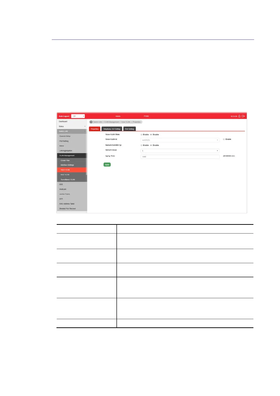 Voice VLAN State Enabled – Click it to enable Voice VLAN.