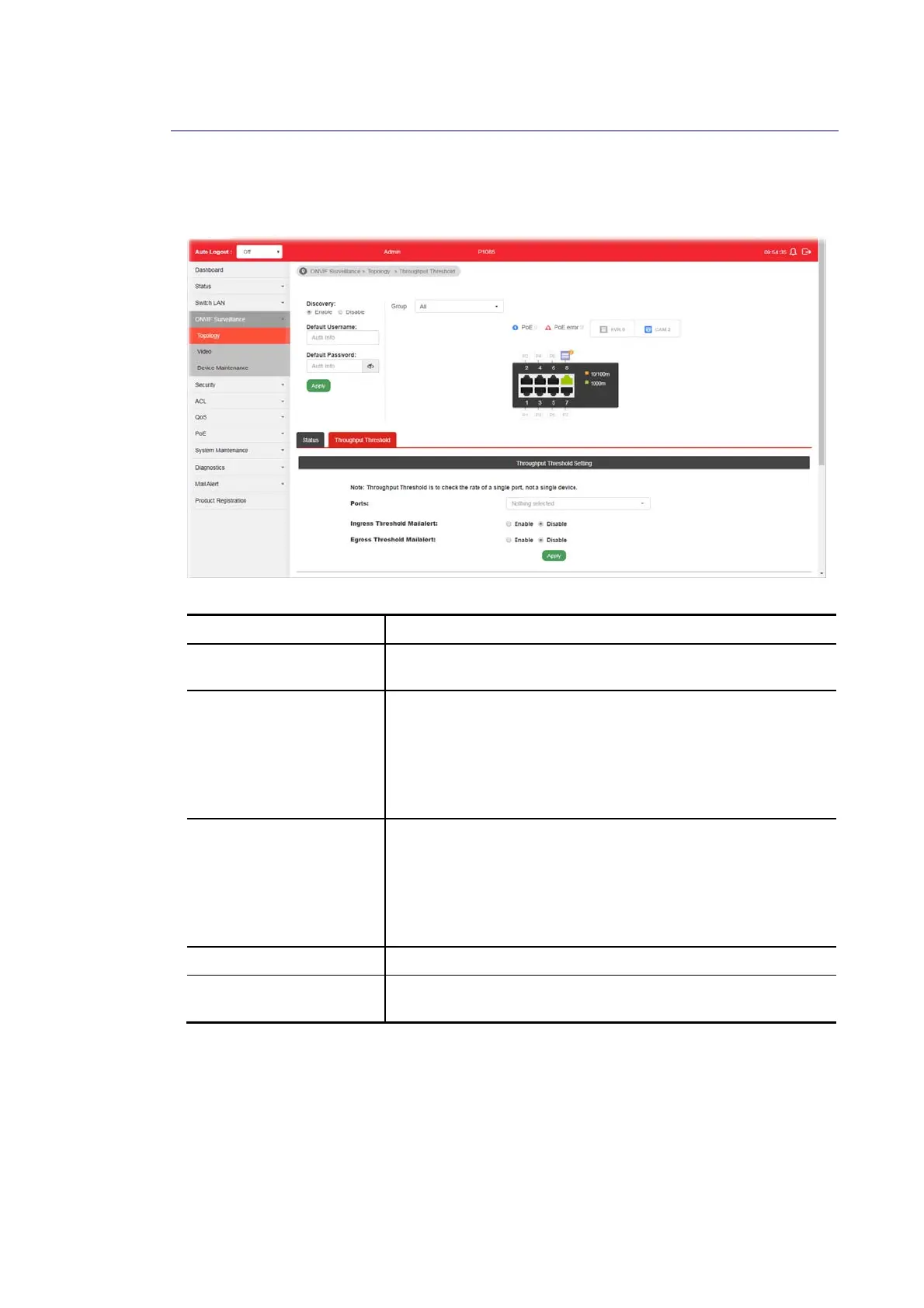 This page is used for set throughput threshold for multiple ONVIF devices managed by