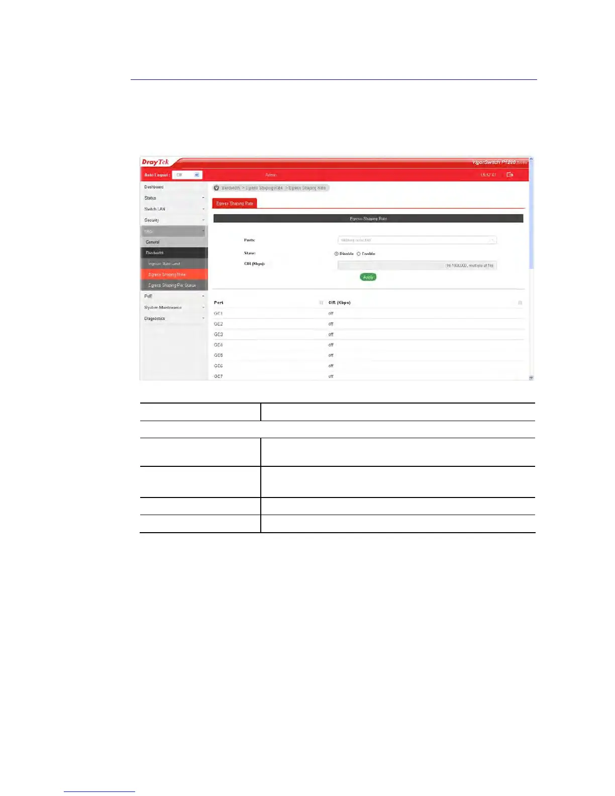 This page allows a user to configure egress port rate limit. The egress rate limit is the number