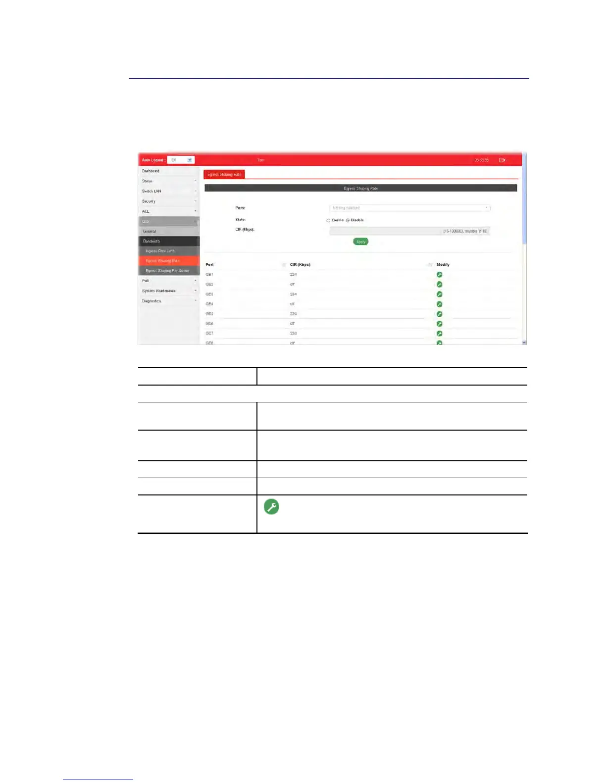 This page allows a user to configure egress port rate limit. The egress rate limit is the number