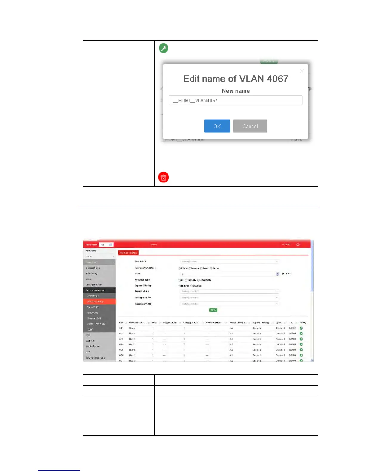 This page allows a user to configure interface setting related to VLAN.