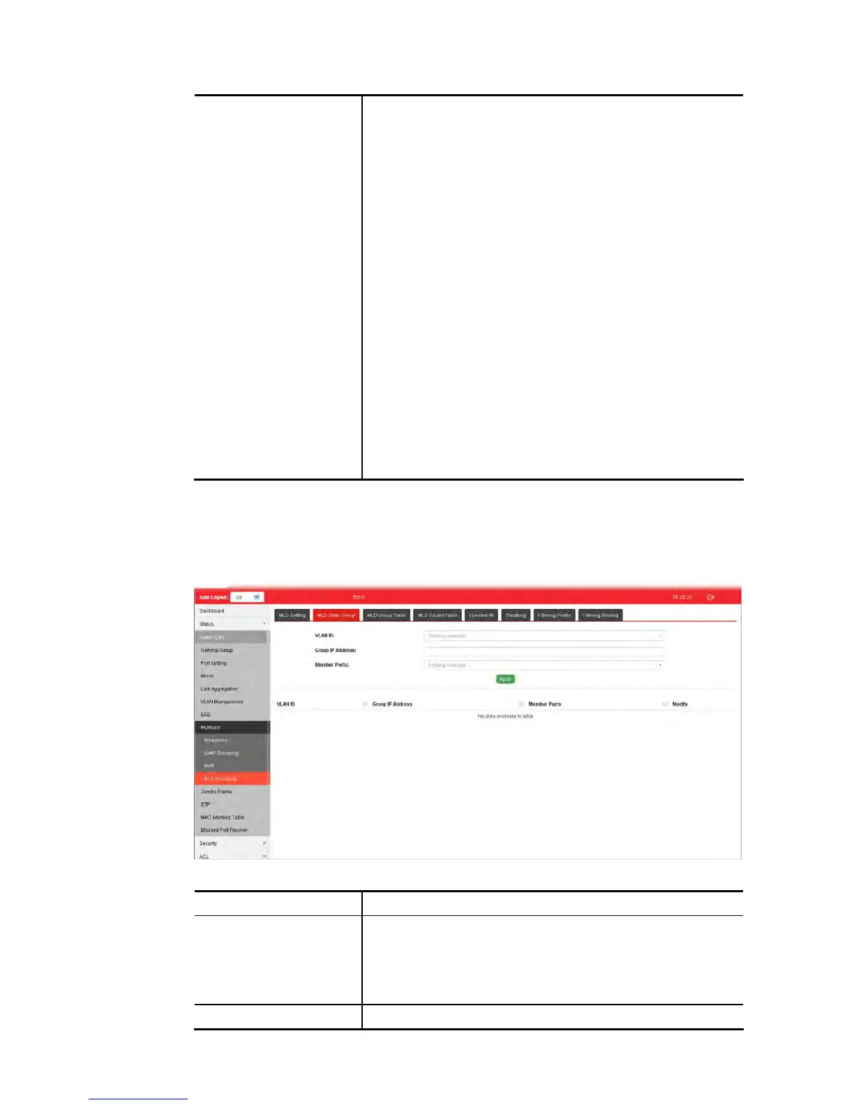 The MLD static group is allowed to assign a VLAN/port as a specific IPv6 multicast member.