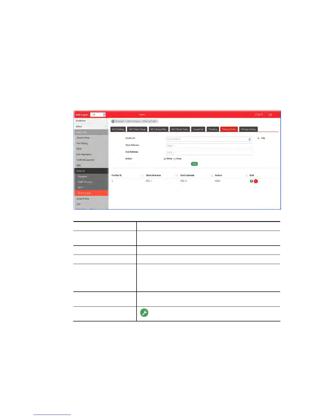 Profile ID Use the drop down list to select one filtering profile (1~128)