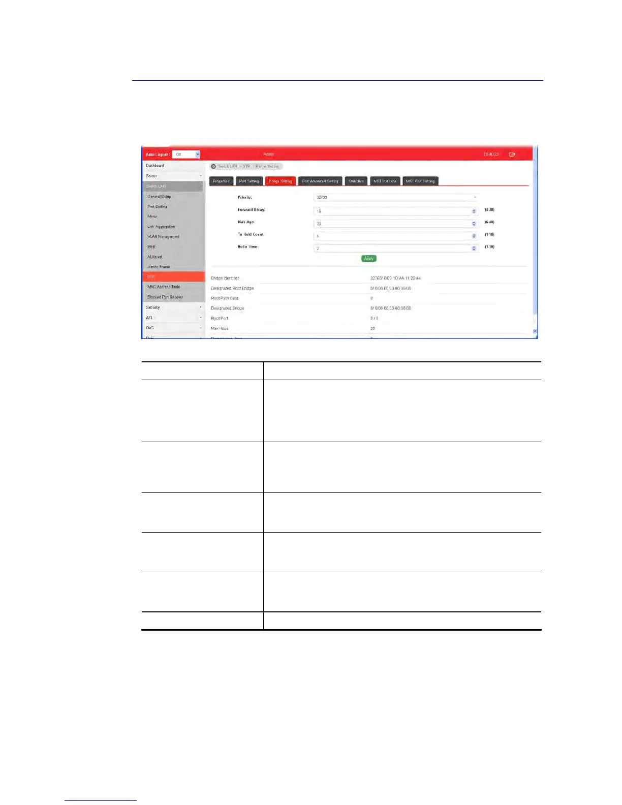 Forward Delay Specify the STP forward delay time, which is the amount of