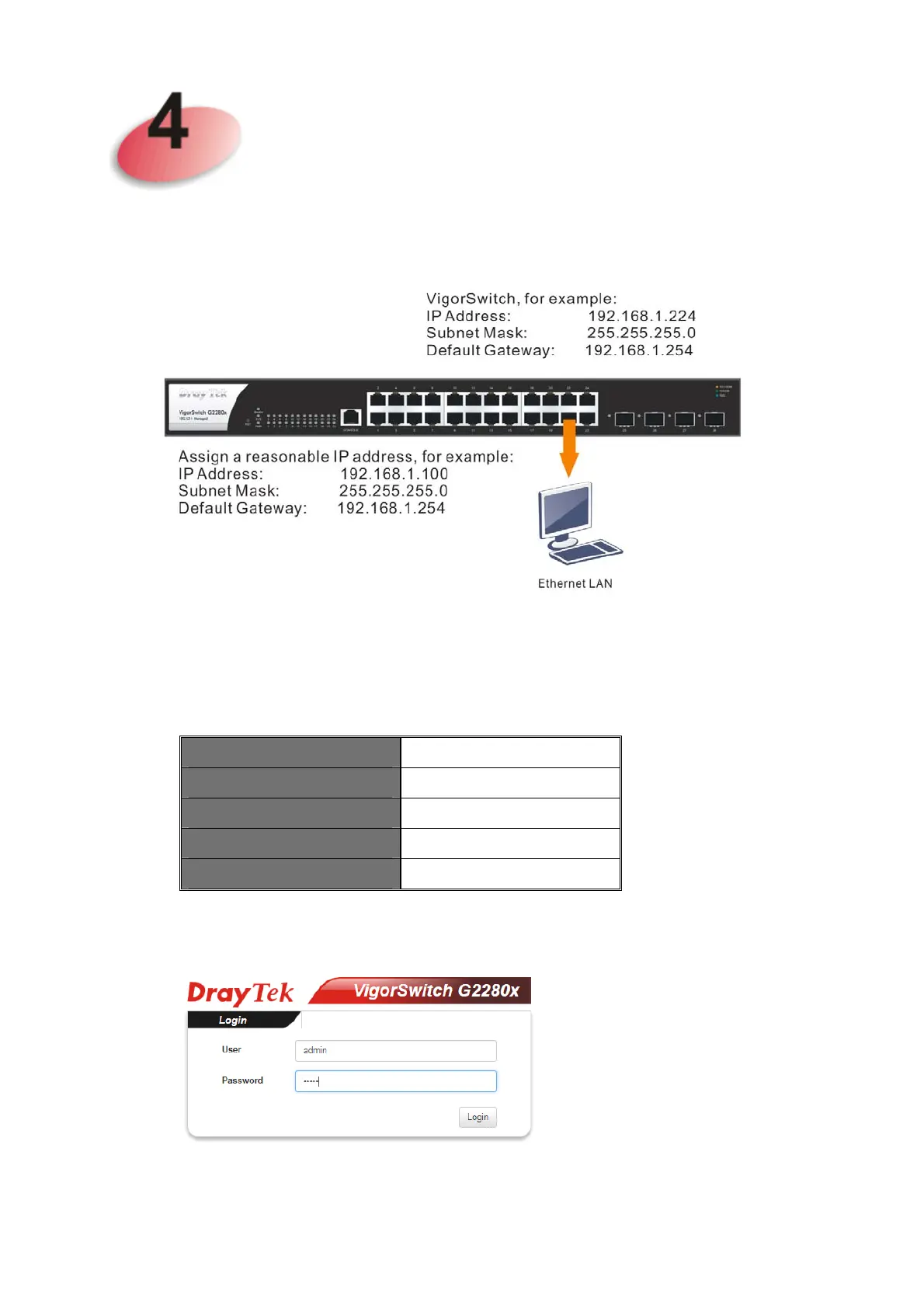 In this section, we take VigorSwitch G2280x as an example: