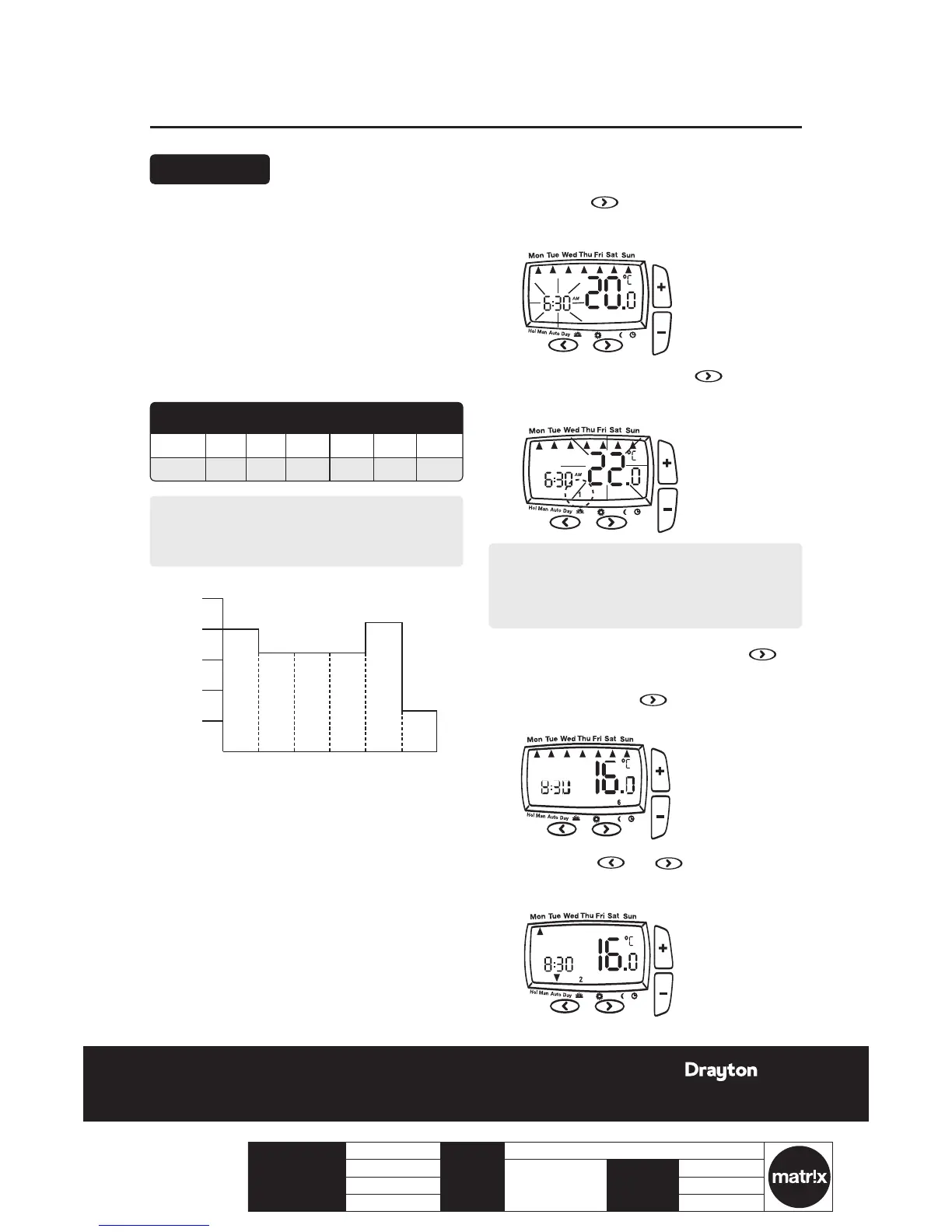 the week) and allows you to set 6 time and temperature