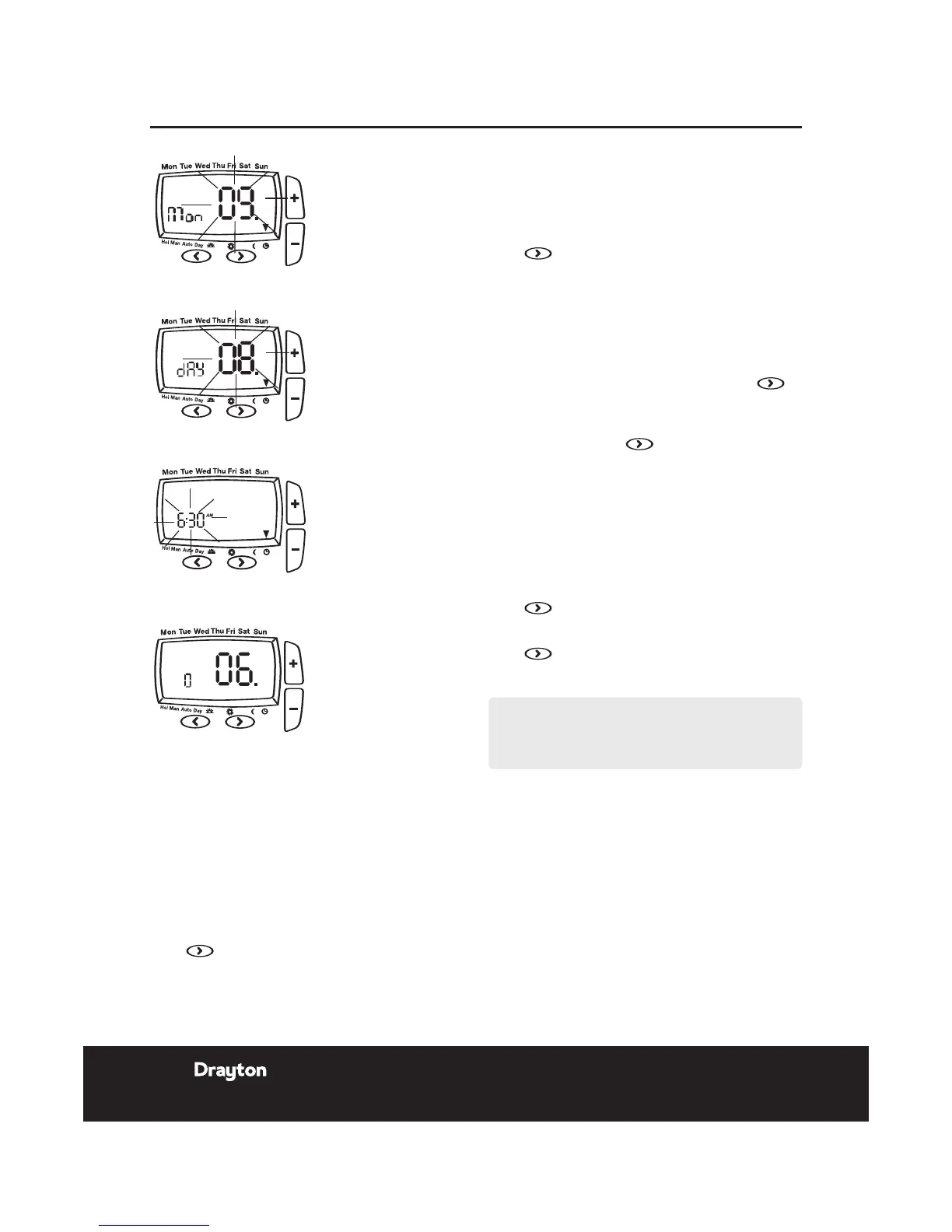 as required. Press > to accept the change and move to the next