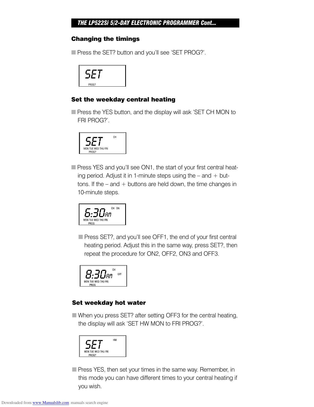 heating, the display will ask ‘SET HW MON to FRI PROG?’.