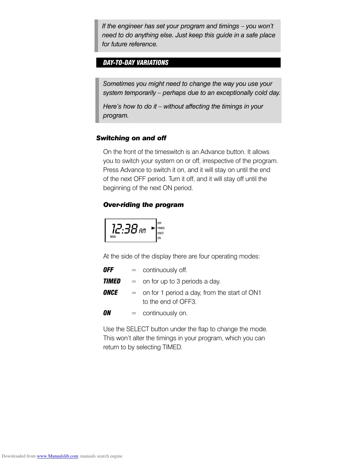 chosen ‘On’ and ‘Off’ heating periods, or be permanently off.