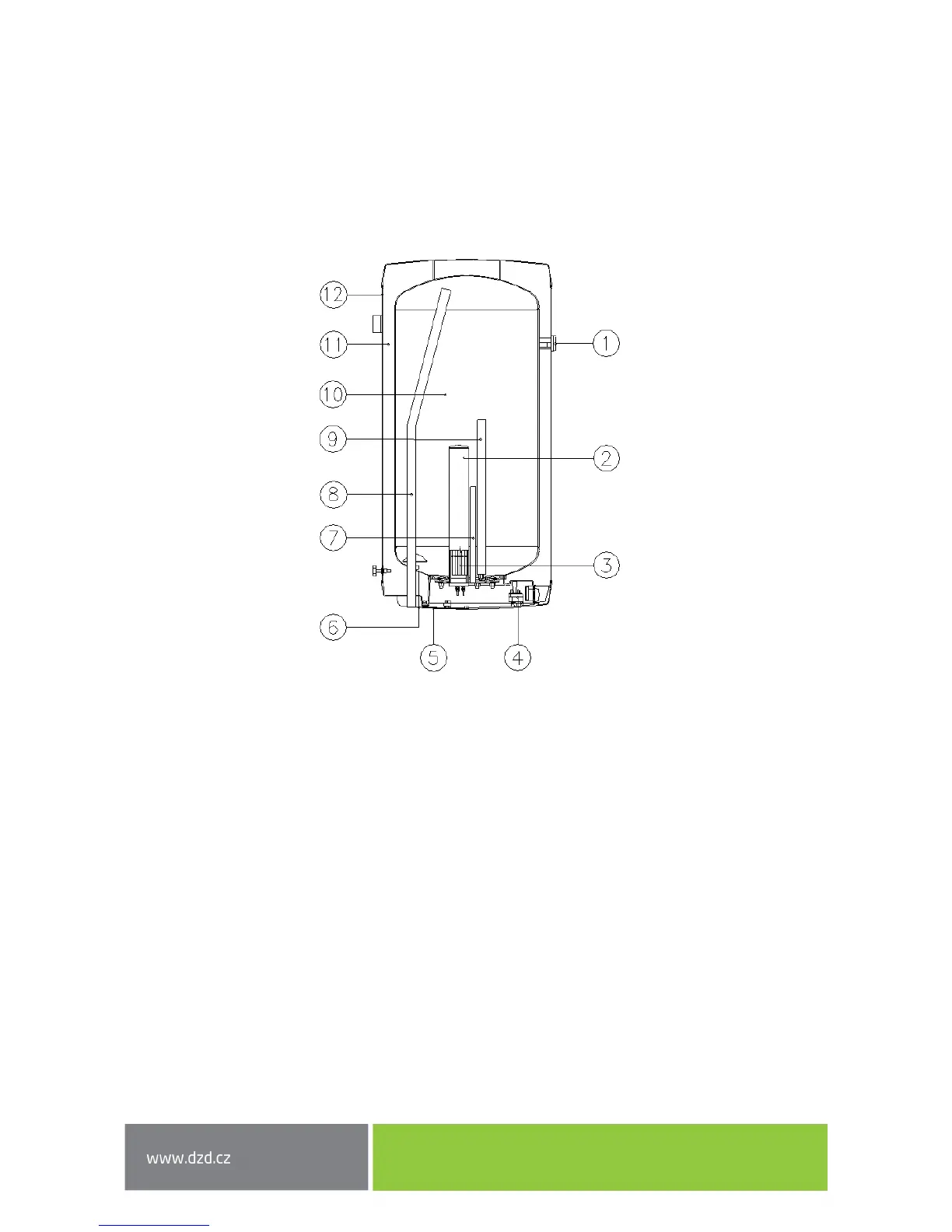 a heating element, thermostat sensors and safety fuses are located in the flange lid. An anode rod is mounted