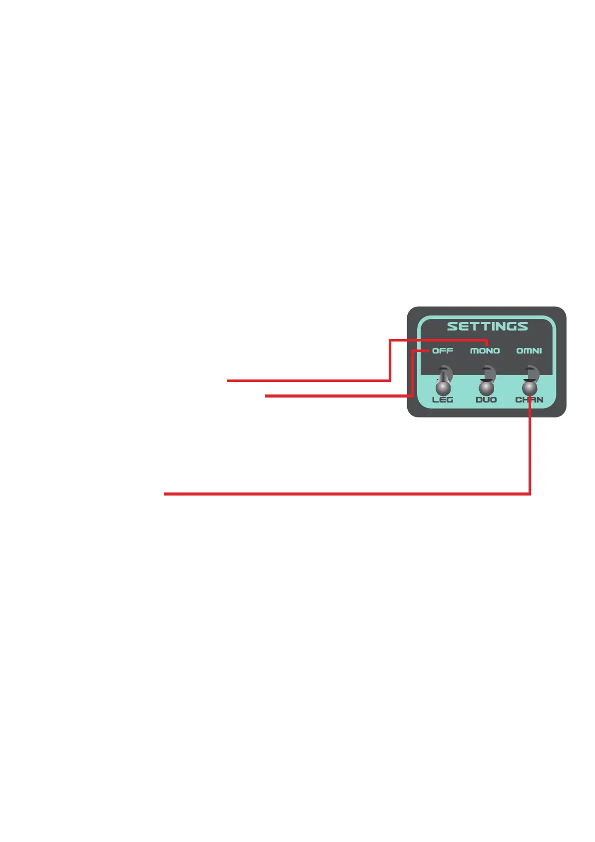 - 3 or more keys pressed: Oscillator 1 will play the low note, Oscillator 2 will play the last played note,