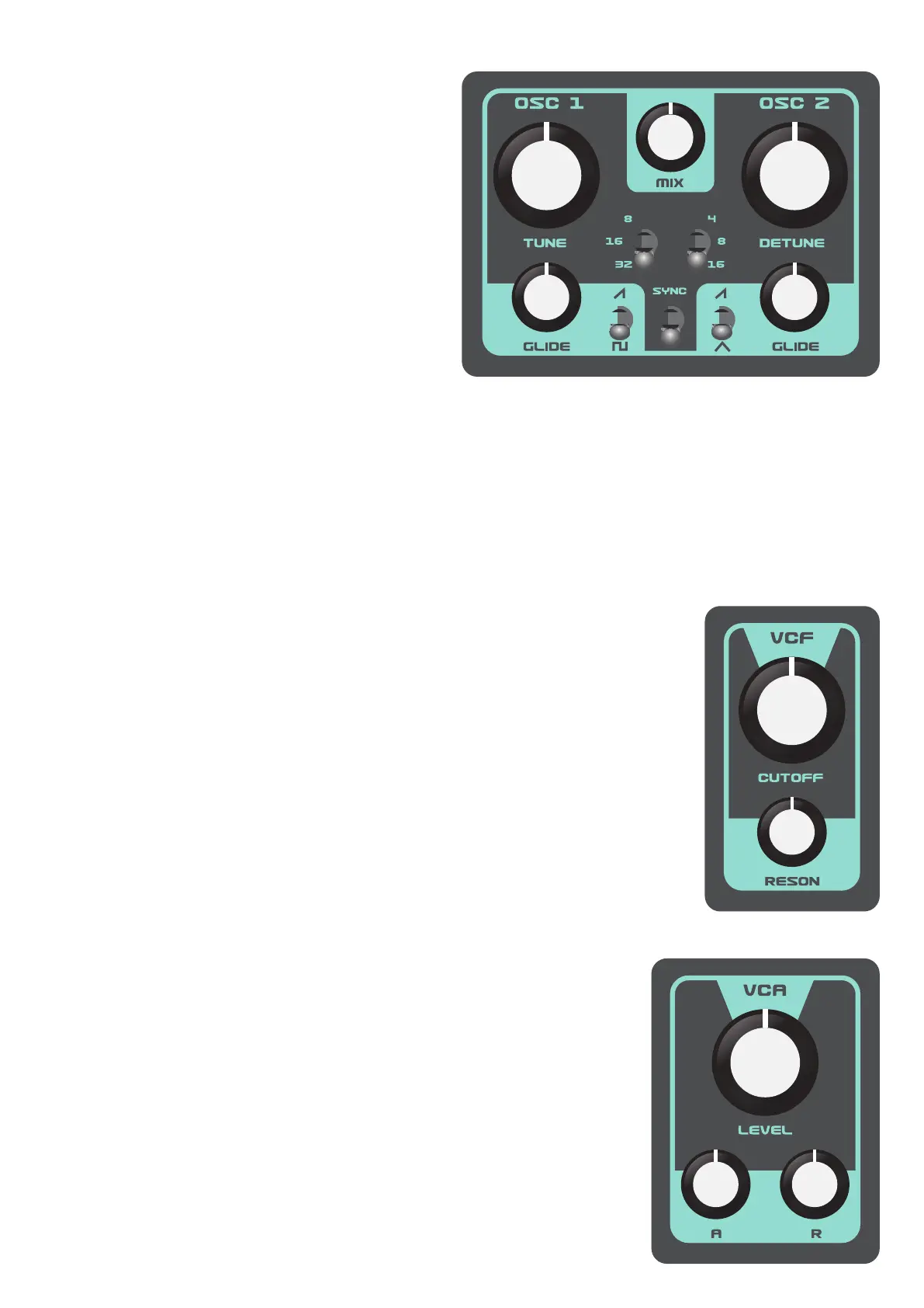 8. Sets the Glide’s Rate for the Osc2 (portamento)