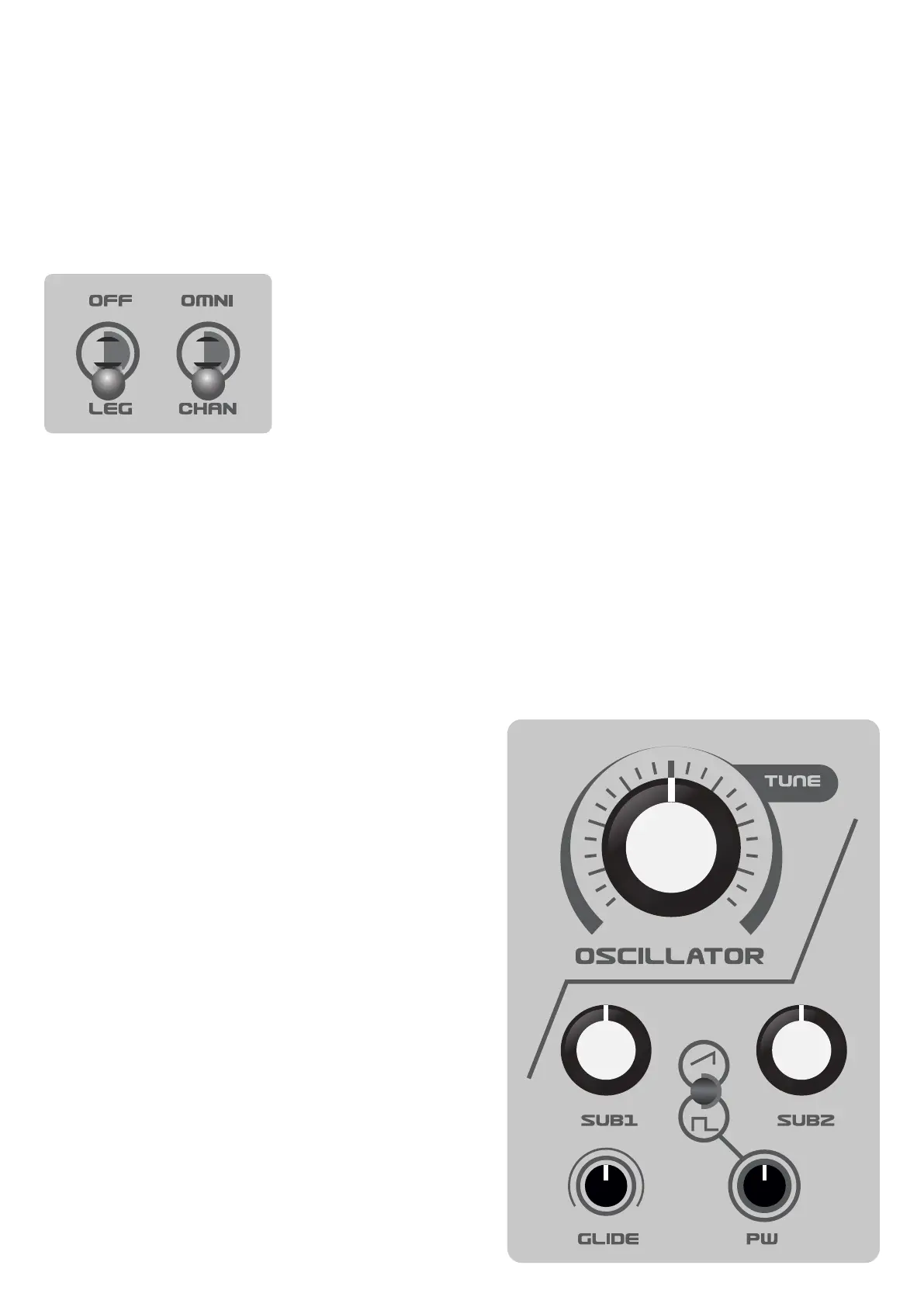 - Pitch wheel for 3 semitones up/down. This is also transmitted by the 1v/oct output.