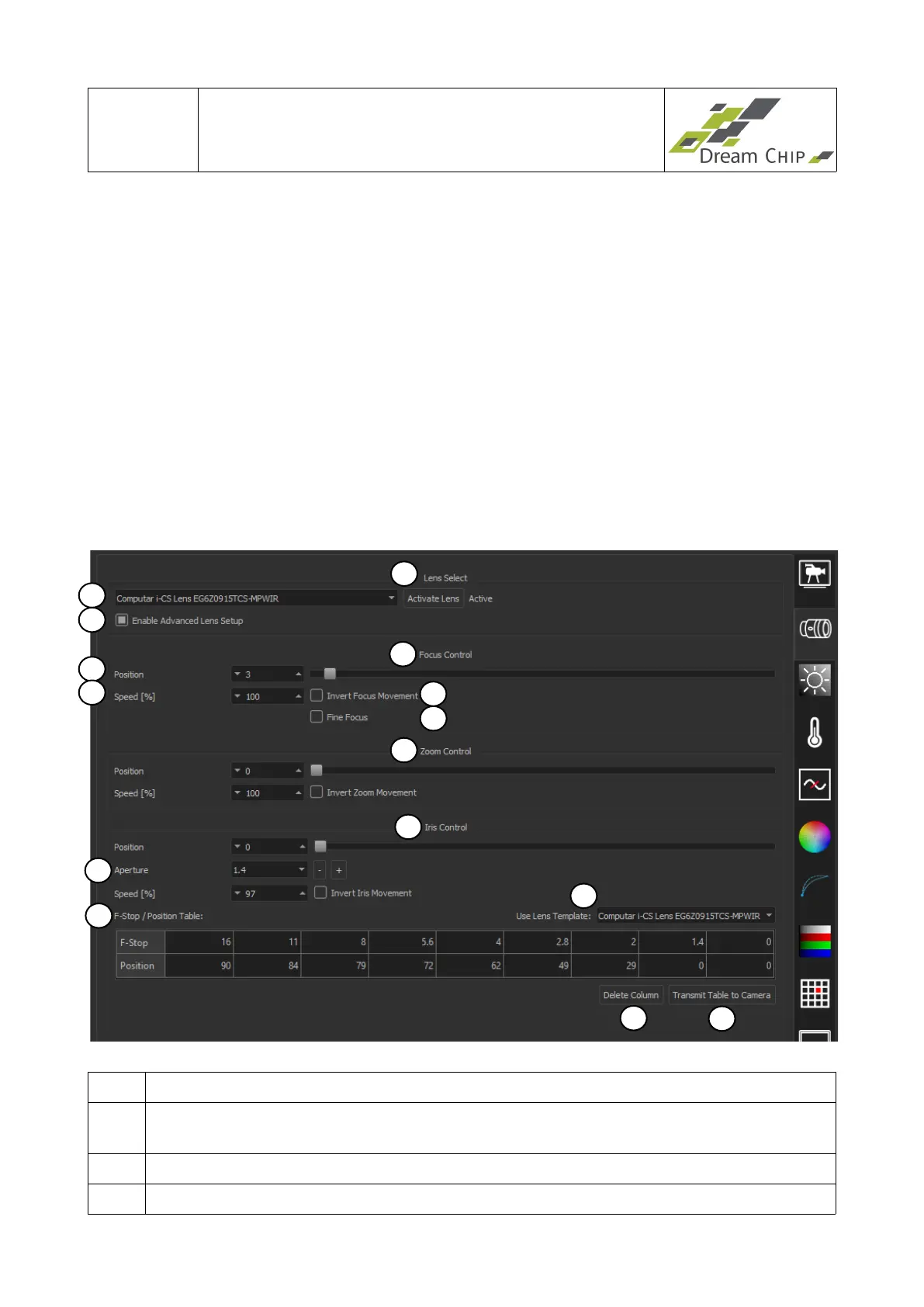 Please note that, depending on the optical lens used, the aperture and focal length have
