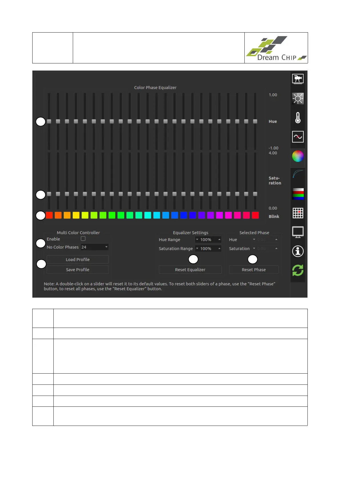 5 The hue sliders will move the color of the selected phase to the neighboring color.