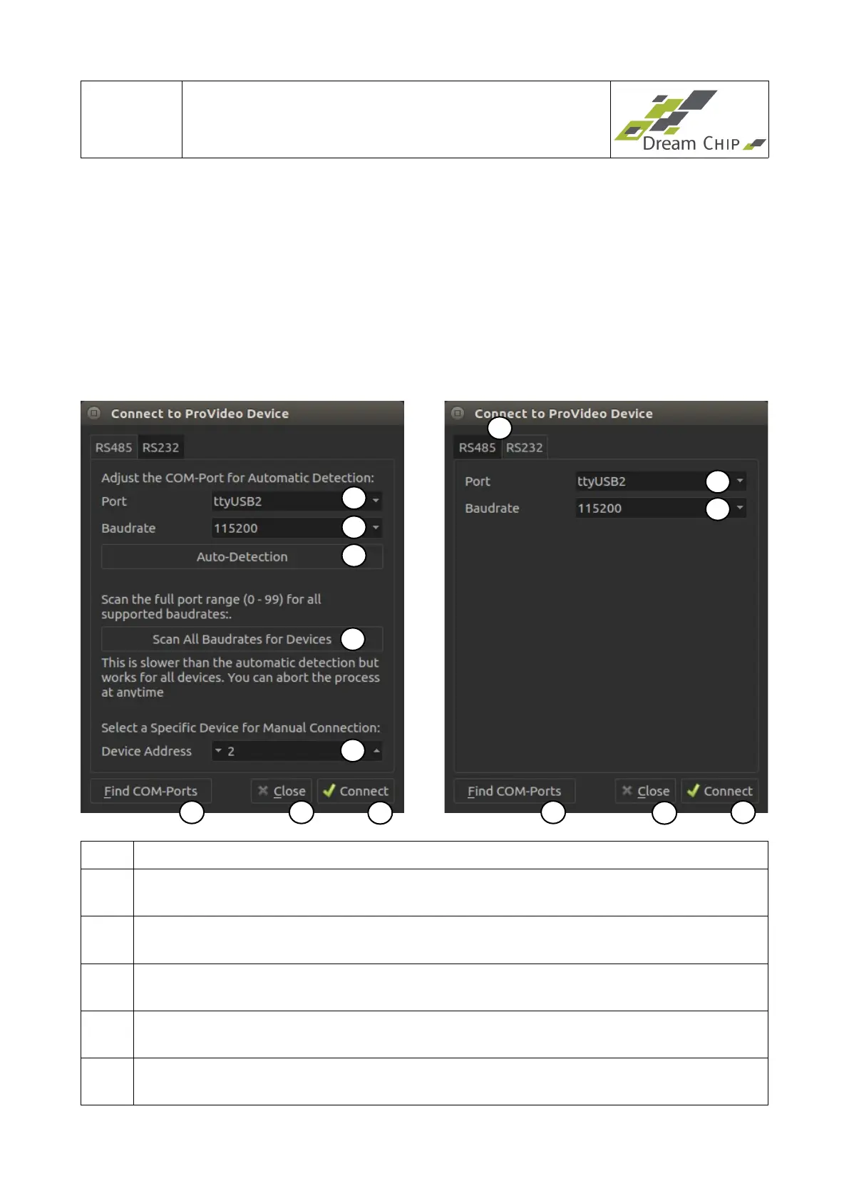 used COM-Port. If one ore more devices are found, the GUI will connect to the first device