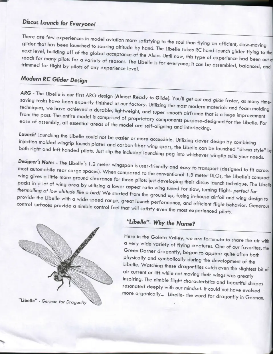 Designers Notes - The Libelle's 1.2 meter wingspan is user-friendly and