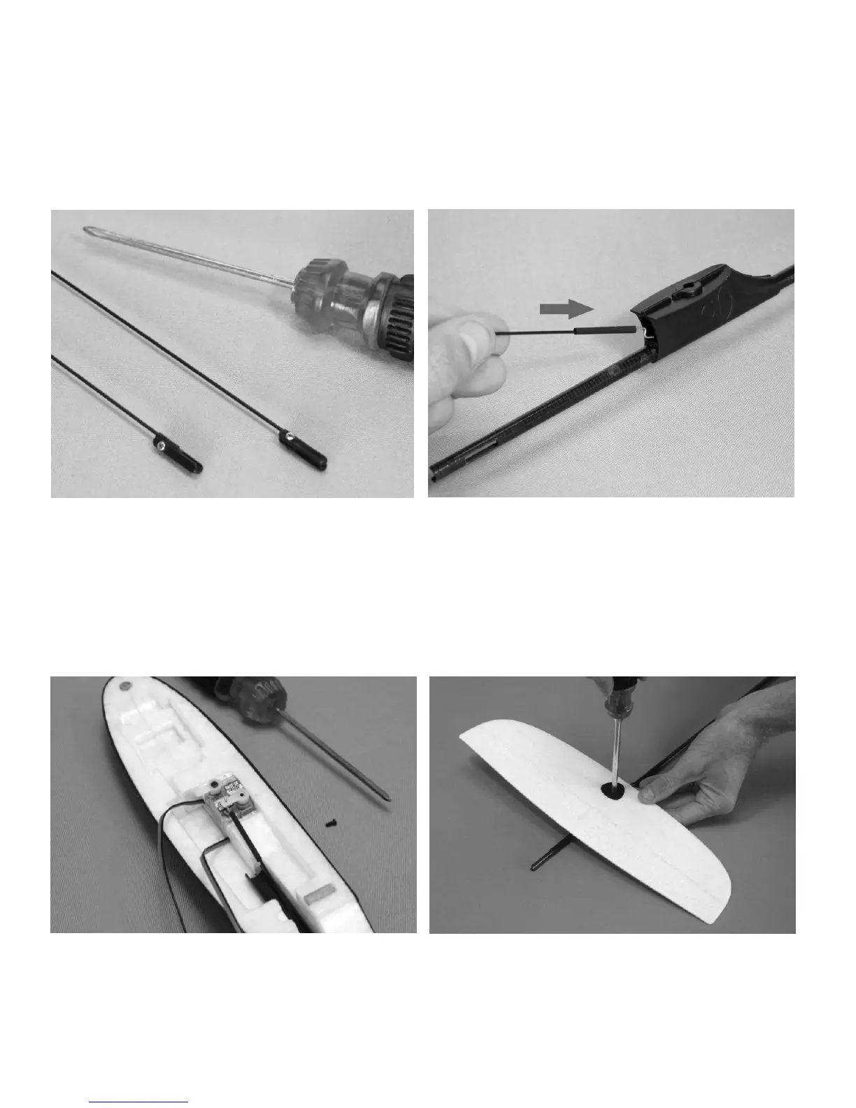 needle nose pliers to grab the pushrod. Reinstall servo arm and replace screw. IMPORTANT: Elevator and