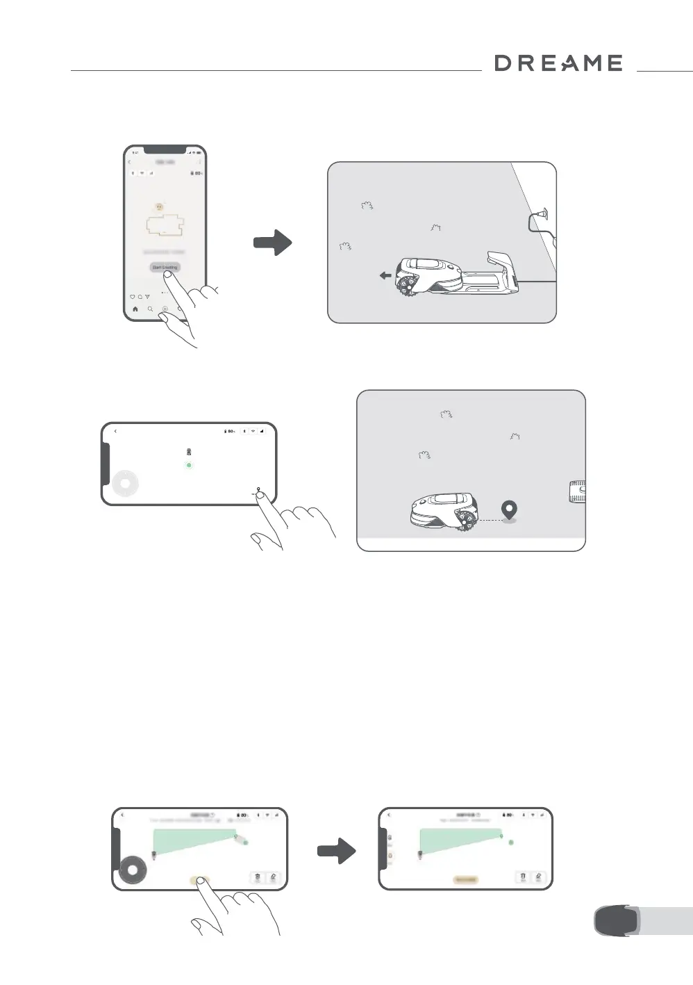 3. Télécommandez le robot pour se déplacer le long de la bordure de la pelouse pour créer la zone de travail.