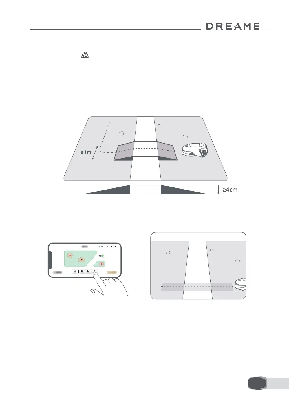 Important : Si votre pelouse est divisée par des passages de plus de 4 cm, placez un objet avec une pente