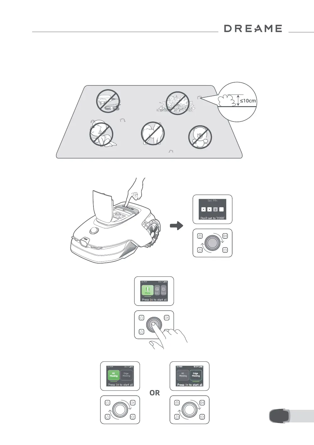 • Dénir les préférences de tonte dans l'application à l'avance (par exemple, ecacité, hauteur et direction