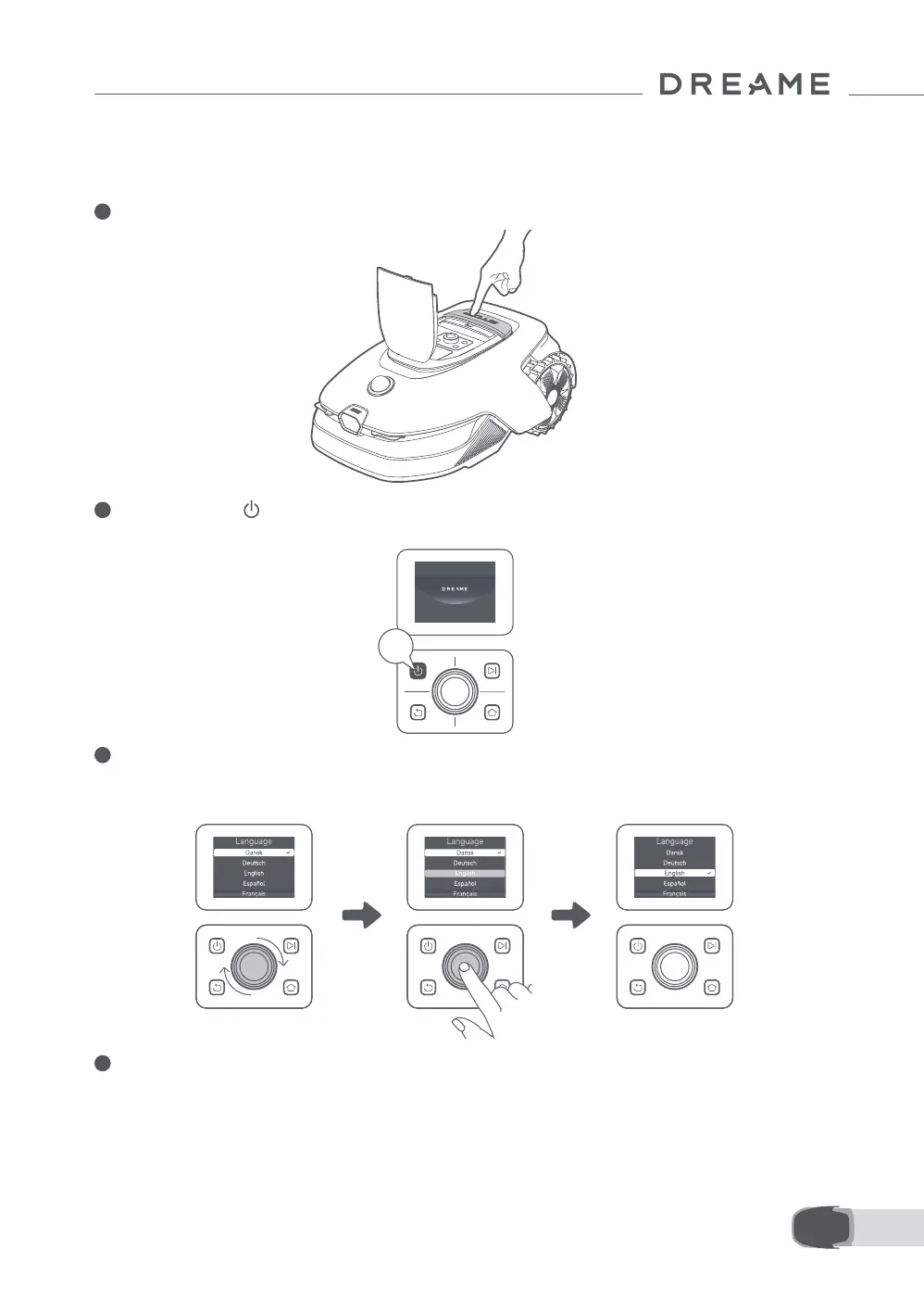Turn the knob clockwise to go down and anticlockwise to go up to select your language. Press the knob to