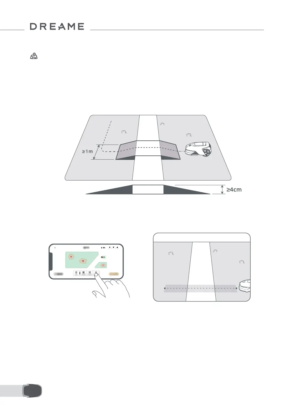 Important: If your lawn is divided by passages higher than 4 cm, place an object with a slope equal in