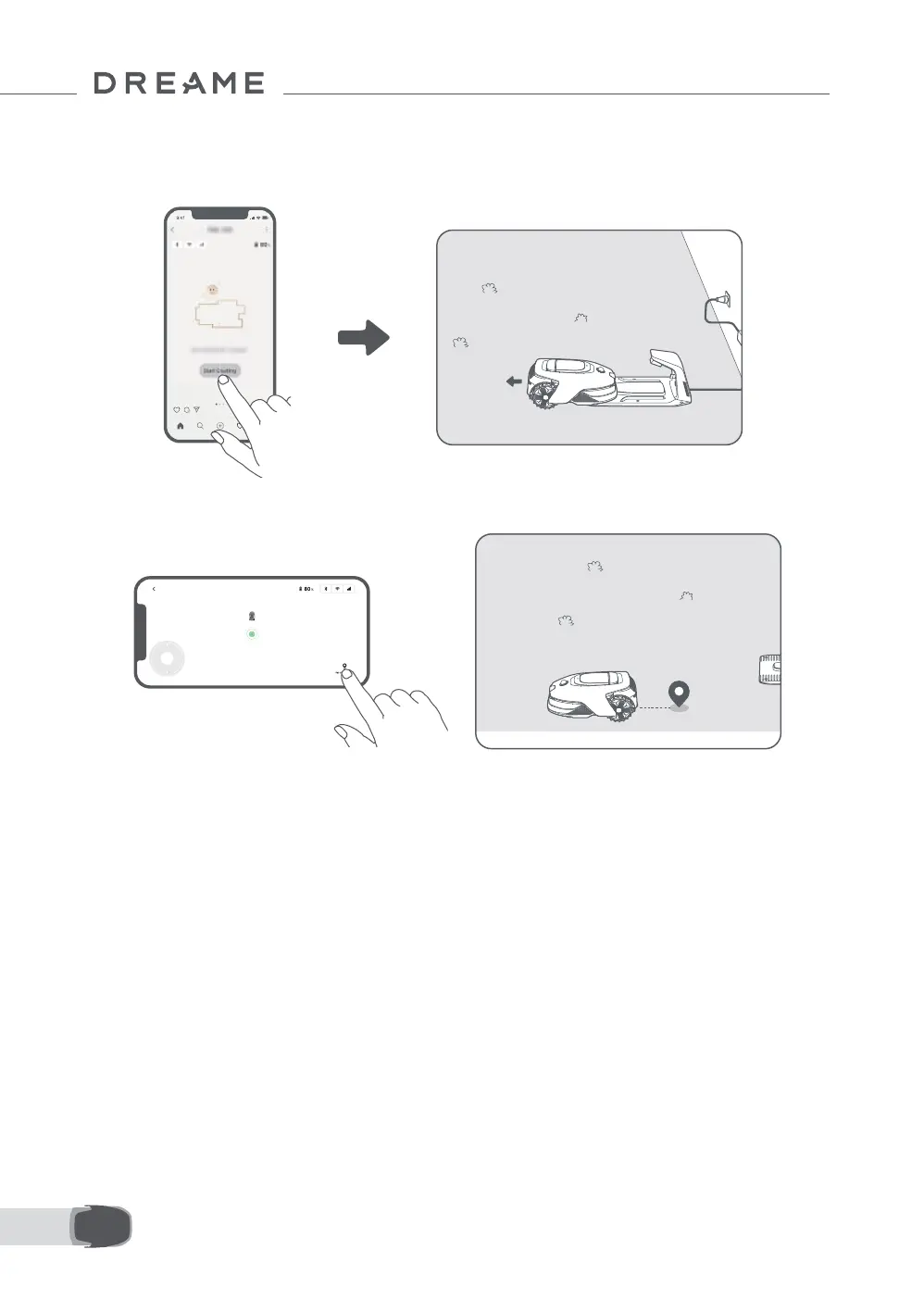 2. Führen Sie den Roboter per Fernbedienung an den Rand Ihres Rasens und tippen Sie auf Startpunkt