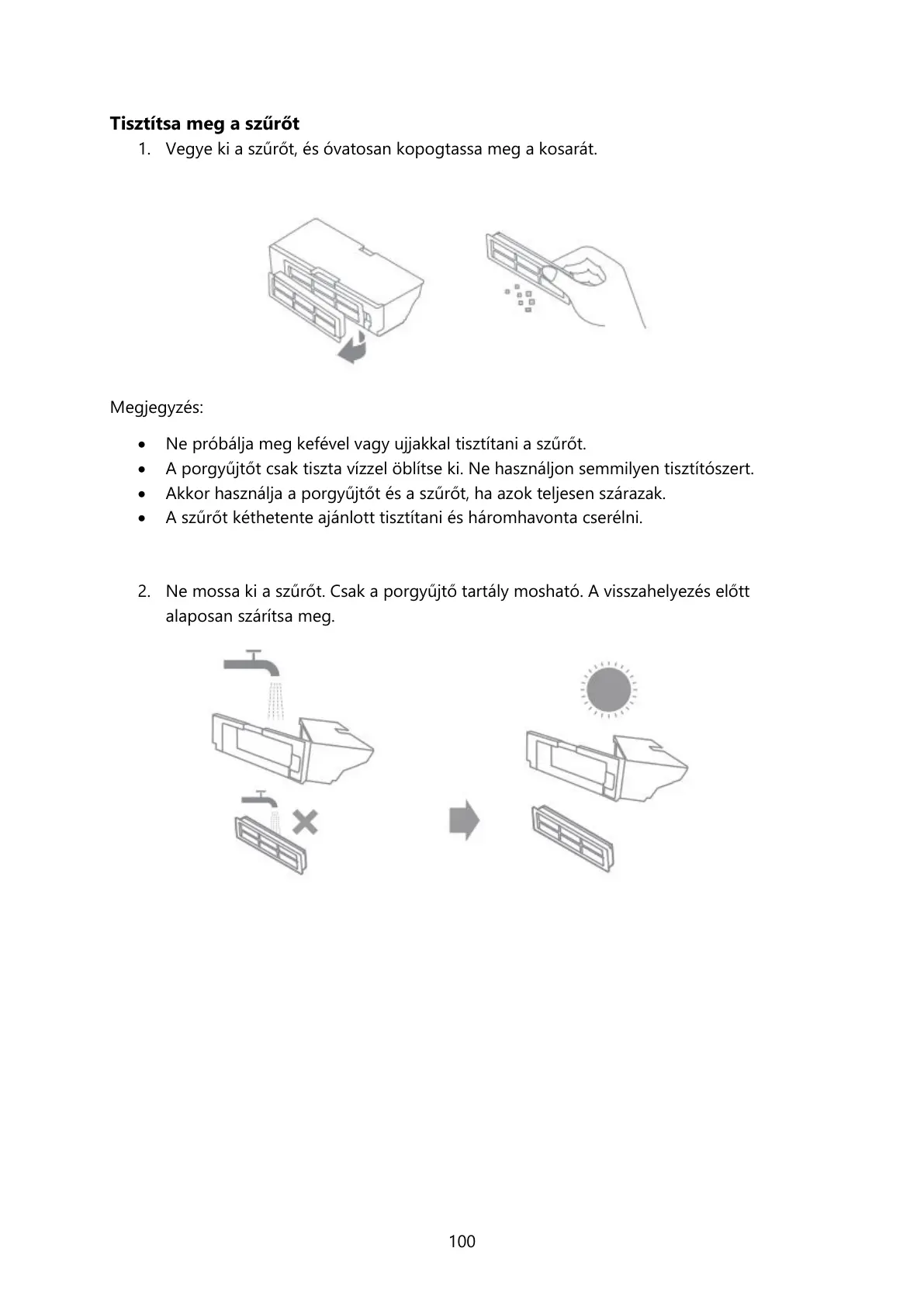 Ne próbálja meg kefével vagy ujjakkal tisztítani a szűrőt.