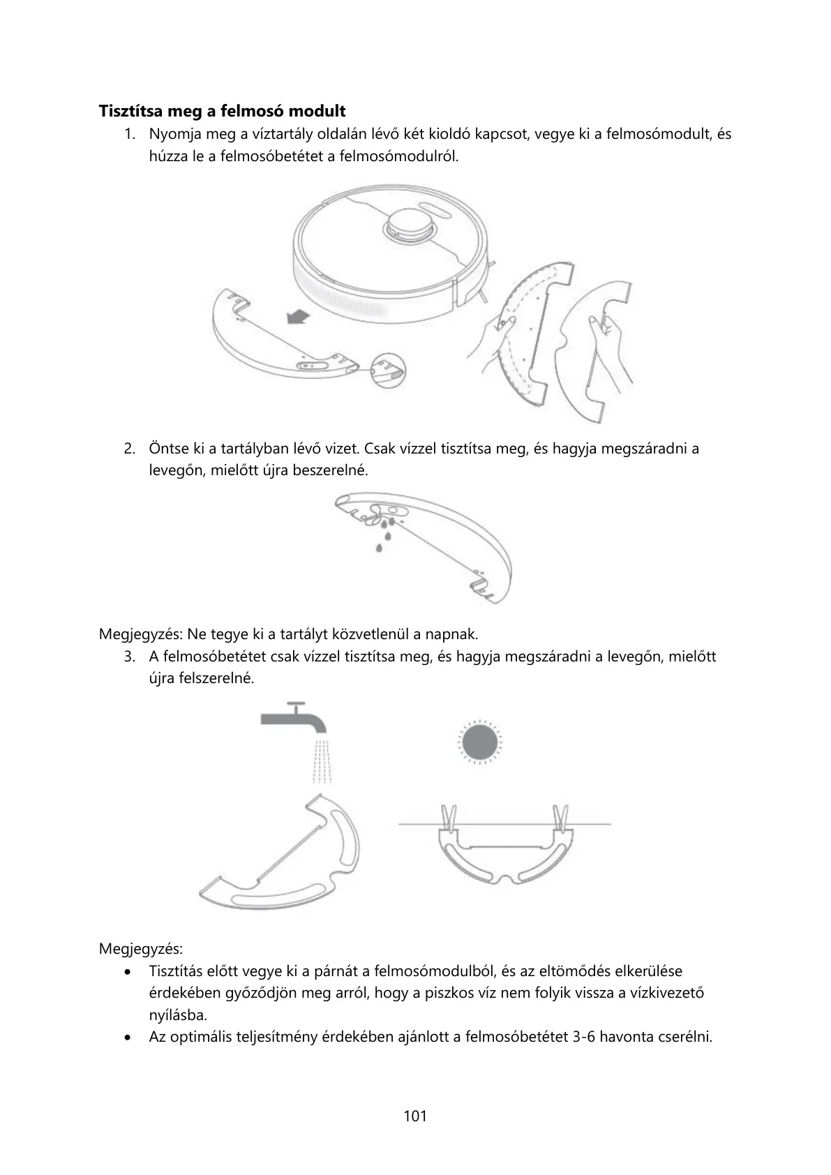 3. A felmosóbetétet csak vízzel tisztítsa meg, és hagyja megszáradni a levegőn, mielőtt