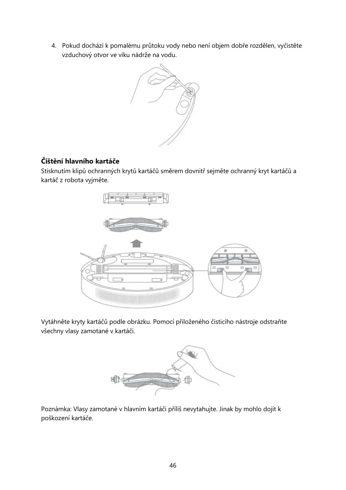 Poznámka: Vlasy zamotané v hlavním kartáči příliš nevytahujte. Jinak by mohlo dojít k