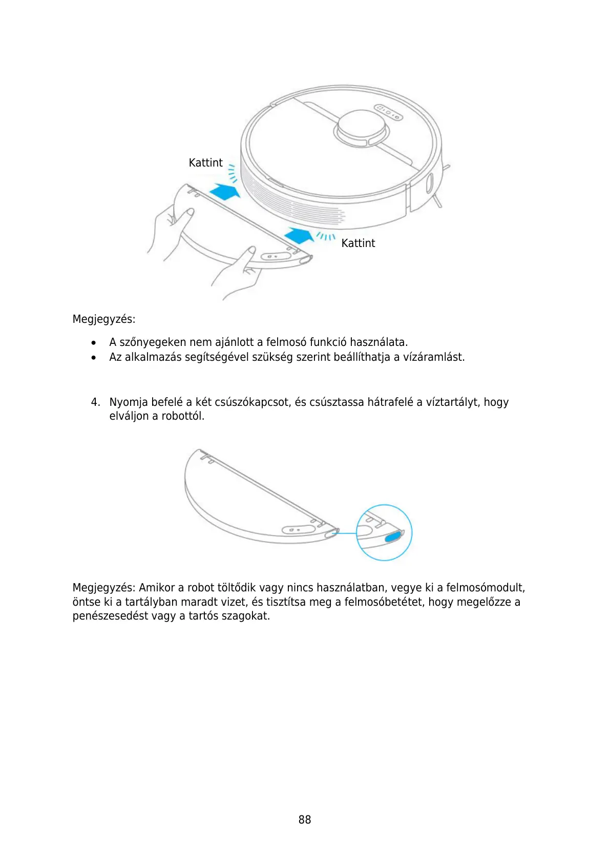Megjegyzés: Amikor a robot töltődik vagy nincs használatban, vegye ki a felmosómodult,