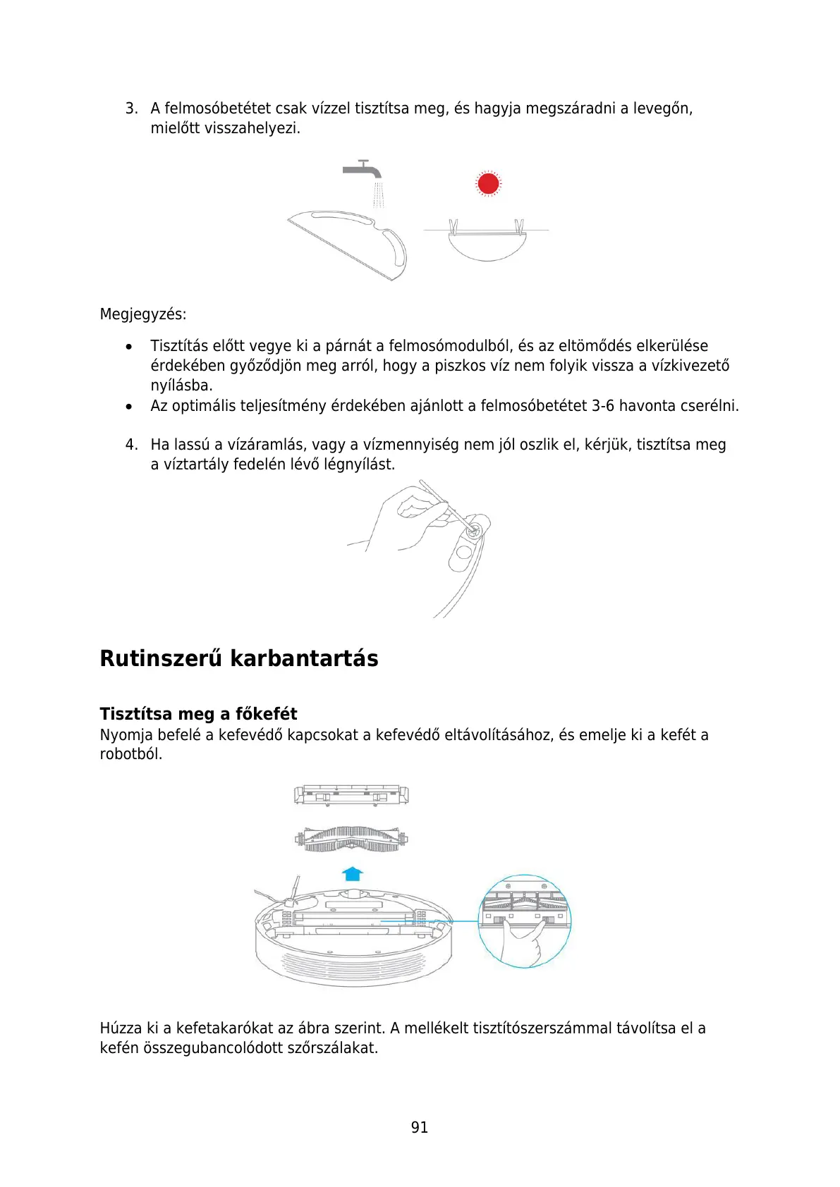Tisztítás előtt vegye ki a párnát a felmosómodulból, és az eltömődés elkerülése