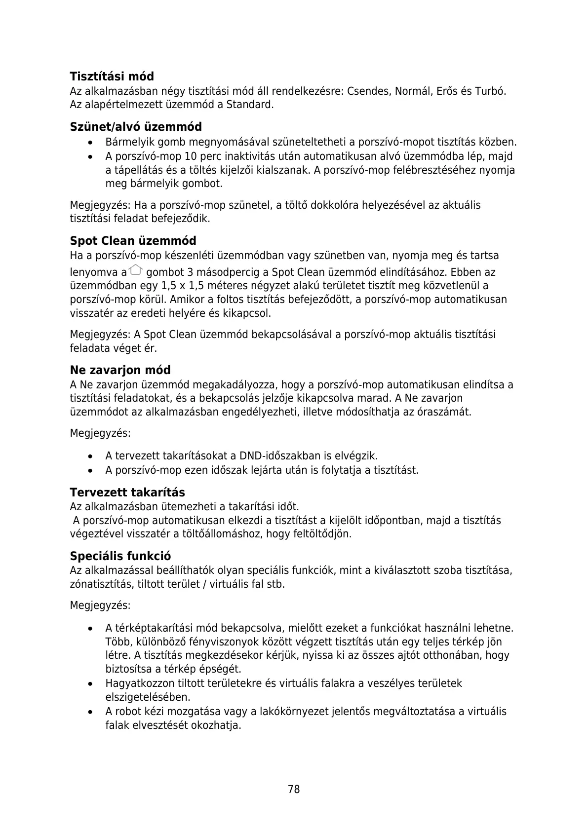 Az alkalmazással beállíthatók olyan speciális funkciók, mint a kiválasztott szoba tisztítása,