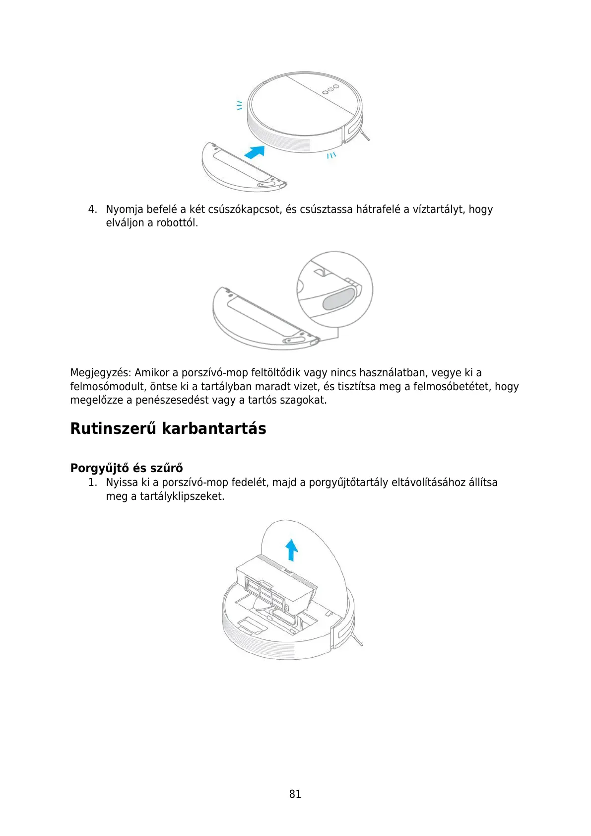 Megjegyzés: Amikor a porszívó-mop feltöltődik vagy nincs használatban, vegye ki a