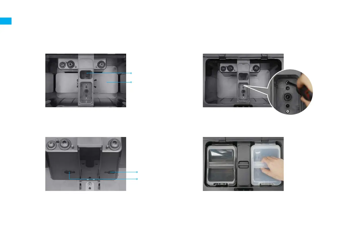 10. Plaats het deksel van de opbergbak, de schoonwatertank en de