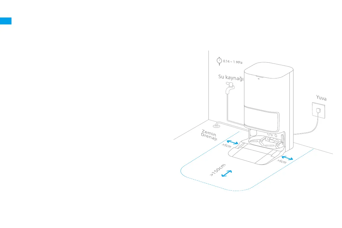 ·Su basıncını ölçmek için bir su basıncı ölçer kullanın ve 0,14 MPa ile 1 MPa
