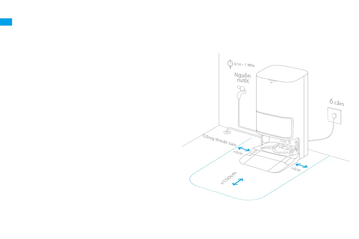 Đảm bảo khoảng cách 1,5 m phía trước và 5 cm hai bên trạm sạc không có