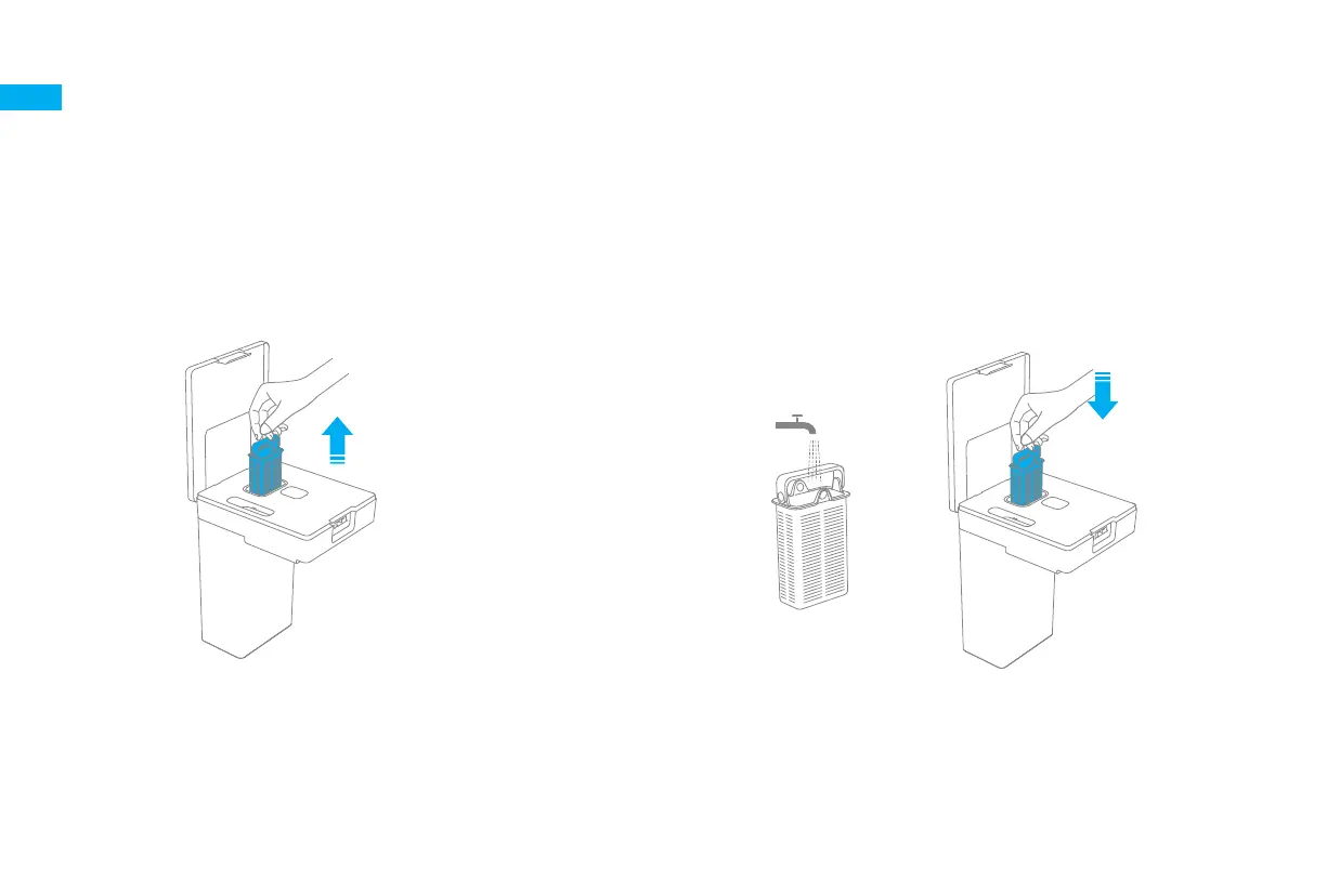 1. Mở nắp và lấy bộ lọc nước đã qua sử dụng ra.