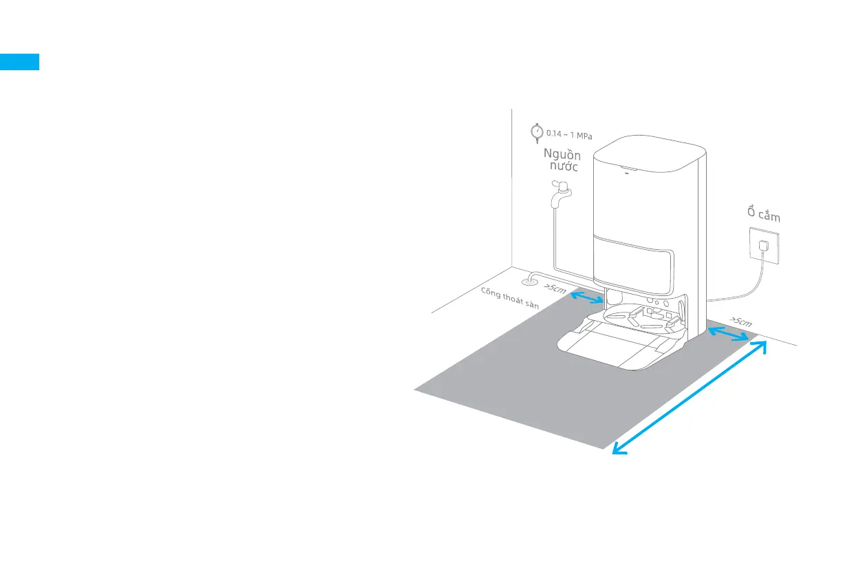Vị trí khuyến nghị là gần nguồn nước và cống thoát sàn.