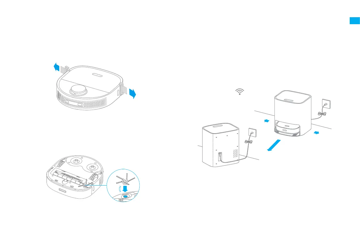 Note: Install the side brush until it clicks into place.