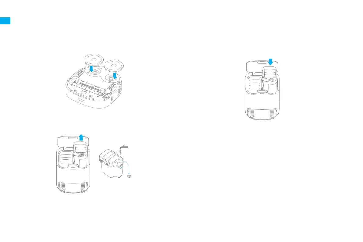 1. Installez la serpillière 3. Placez le réservoir d'eau propre dans la base