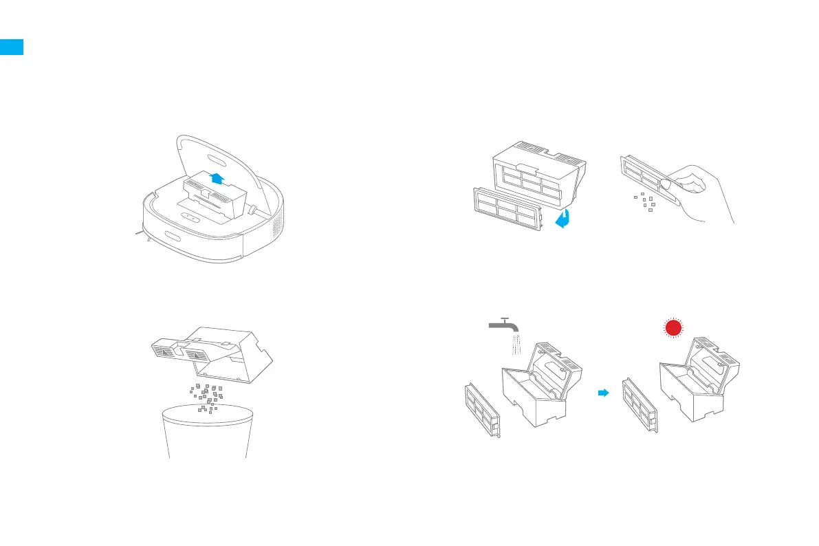 2. Rincez le bac à poussière et le ltre sous l'eau courante et séchez-les