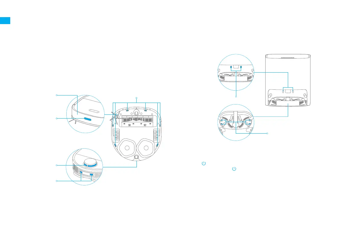 · Contacts de charge à l'arrière du robot