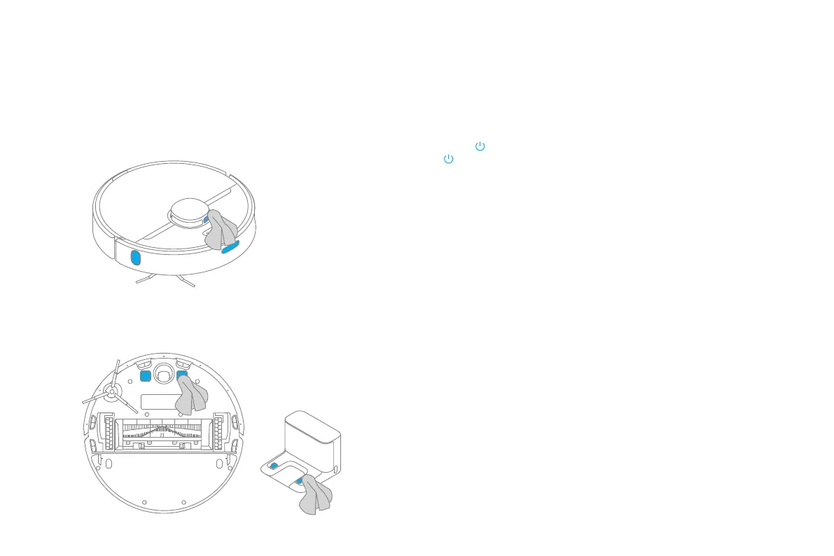 Note: Please use dry dishcloth for cleaning, as the robot and inner charging dock include