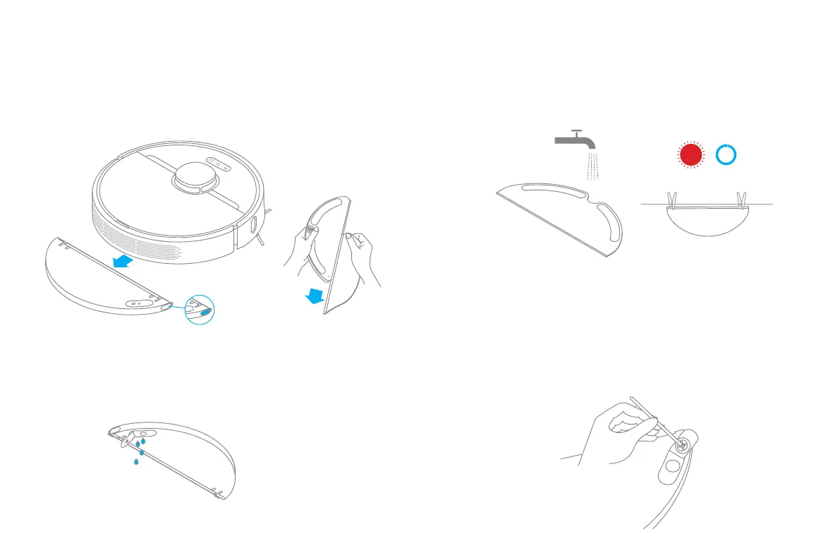 Retirez la serpillière du module de lavage avant de la nettoyer et assurez-vous que