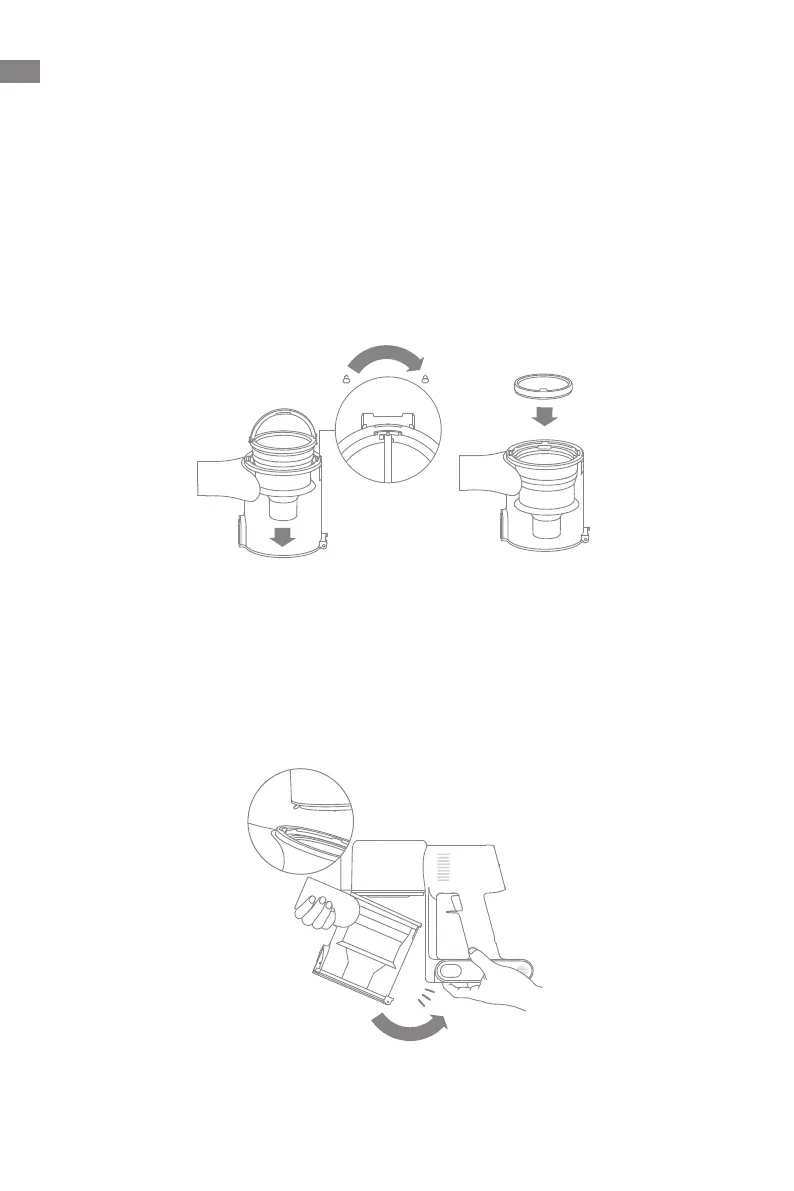 avec le clip sur l'aspirateur. Enfoncez délicatement le compartiment à poussière jusqu'à