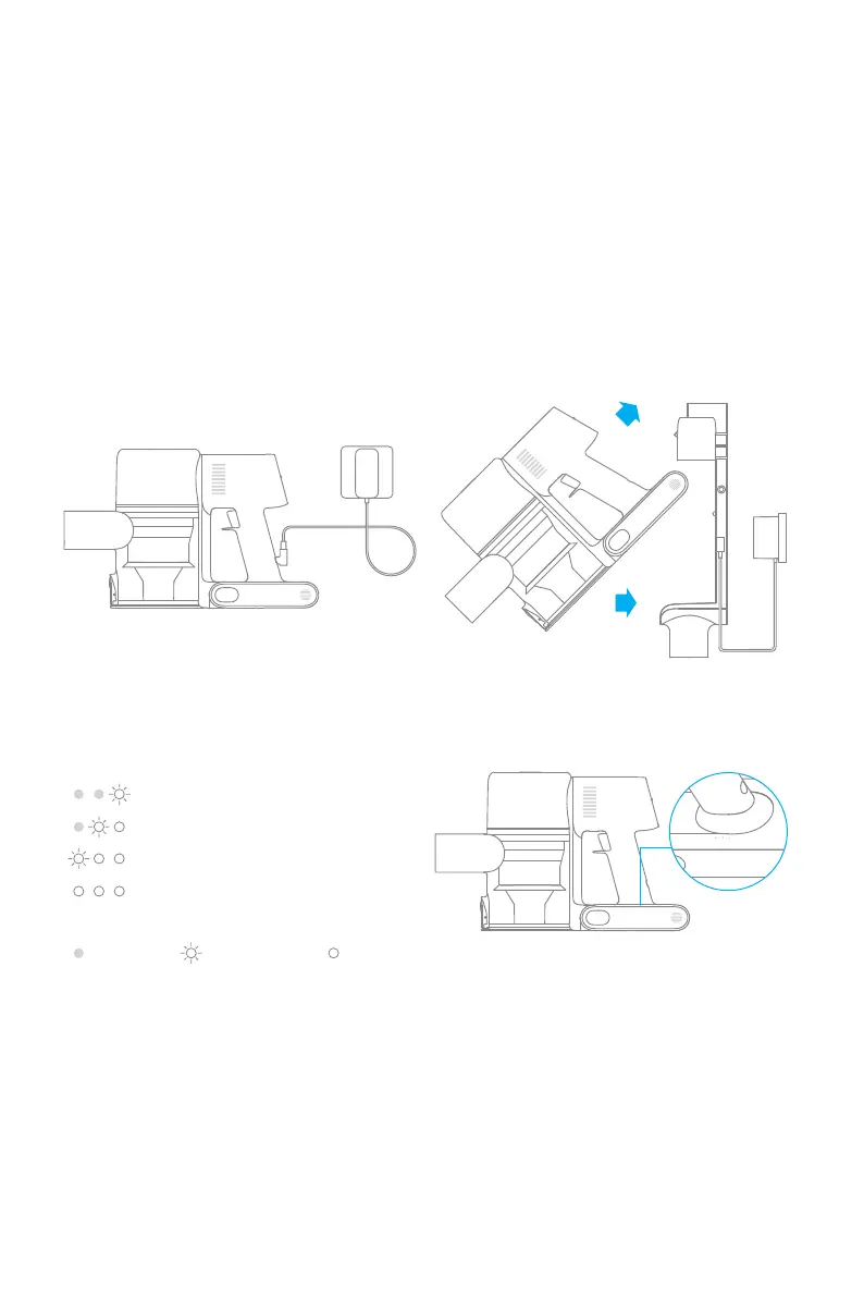 Nota: Una vez que el aspirador esté completamente cargado, el indicador se apagará 5