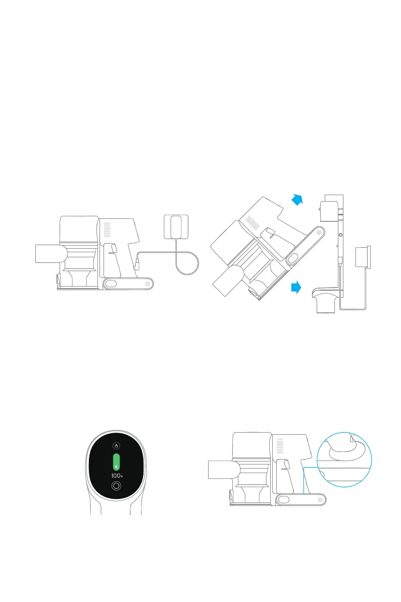 Charging the vacuum with the charger Charging the vacuum on the charging